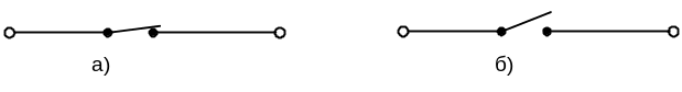 Как можно представить логические функции с помощью электронных схем? Так как логические переменные могут иметь только два дискретных значения, то простейшим способом реализации логической переменной является ключ: разомкнутый ключ эквивалентен логическому нулю, а замкнутый – логической единице.
