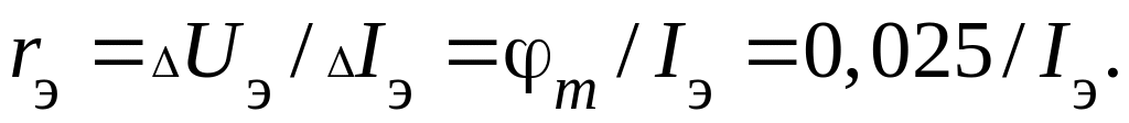 Из этого выражения видно, что величина rэ зависит от постоянного тока в выбранной рабочей точке. Численное значение rэ лежит в пределах от единиц до десятков Ом.