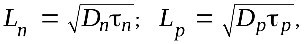 где Ln, Lp – диффузипонная длина электронов и дырок;