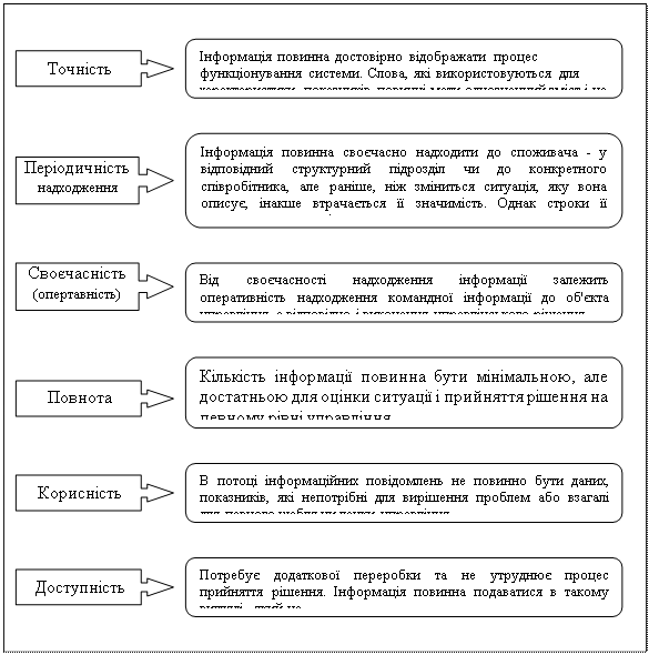 Для того, щоб інформація виконувала свою роль в управлінні, вона повинна відповідати певним вимогам (рис. 6.1.).