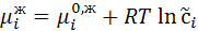 Аналогично химический потенциал компонента неидеального раствора может быть записан как