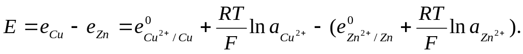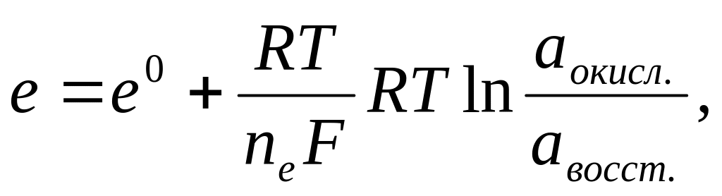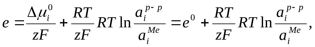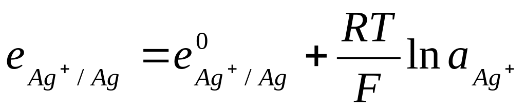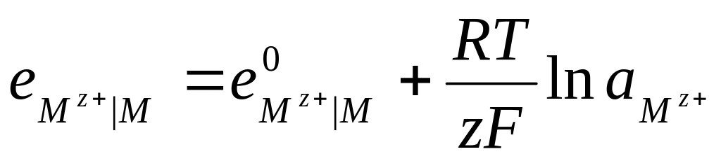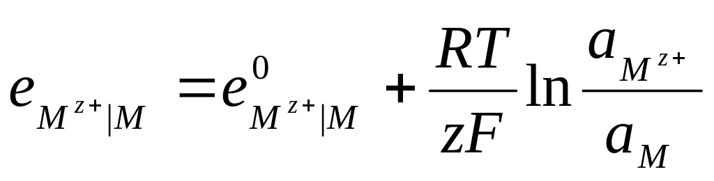 Тогда выражение для электродного потенциала для электрода первого рода будет: