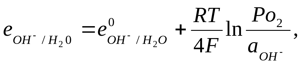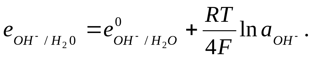 причем в величину е° включена активность воды. Выражение для равновесного кислородного электрода можно записать в виде