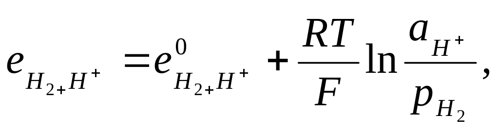 Зависимость потенциала водородного электрода от pH при температуре 298 K:
