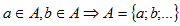 Множества обозначим А, В, С…, а элементы множеств а, b, с…, используя латинский алфавит.