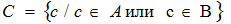 Объединением множеств А и В называется множество С, образованное всеми элементами, которые принадлежат хотя бы одному из множеств А или В. Слова “или” ключевое в понимании элементов входящих в объединение множеств.