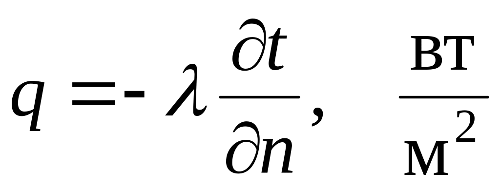 Таким образом, тепловой поток есть вектор, действующий по нормали к изотермической поверхности и направленный противоположно градиенту температуры (рис.2). Тепловой поток измеряется в ваттах. Тепловой поток, проходящий через единицу площади изотермической поверхности, называется плотностью теплового потока