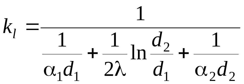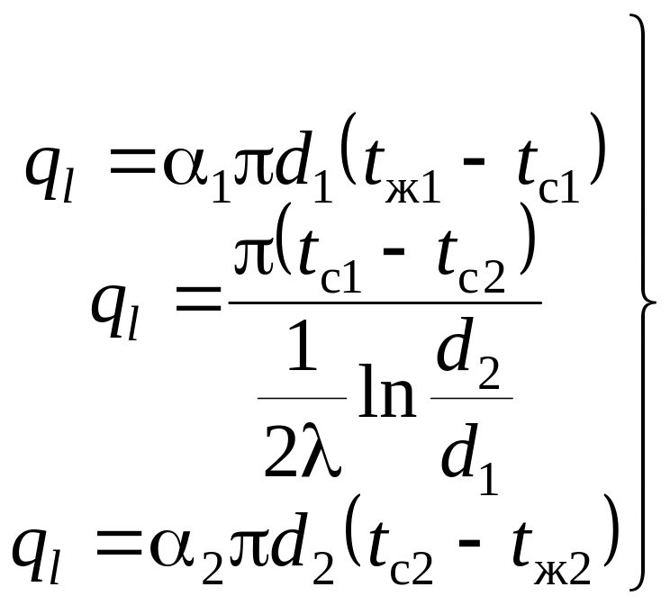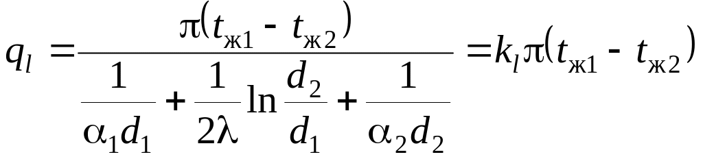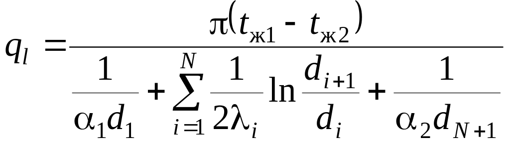 ческой стенки (рис.10) линейное термическое сопротивление равно сумме термических сопротивлений слоёв и линейная плотность теплового потока равна