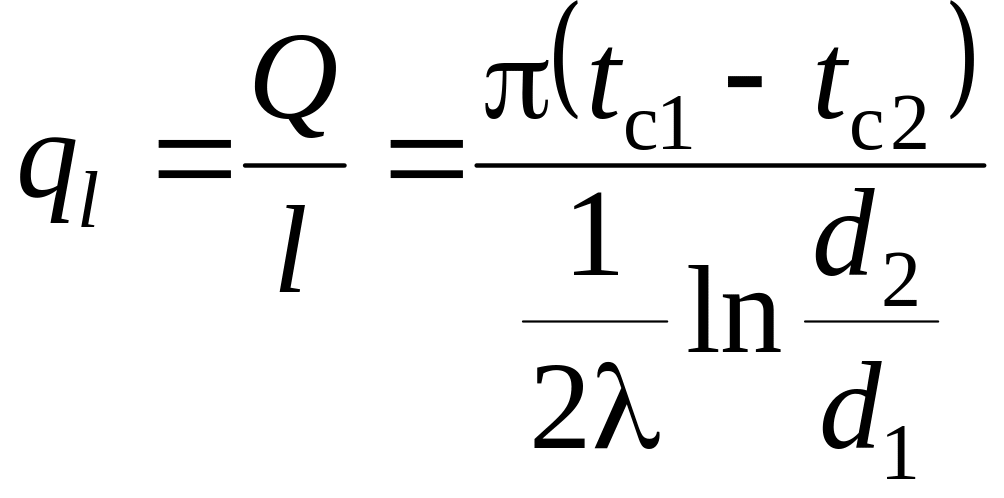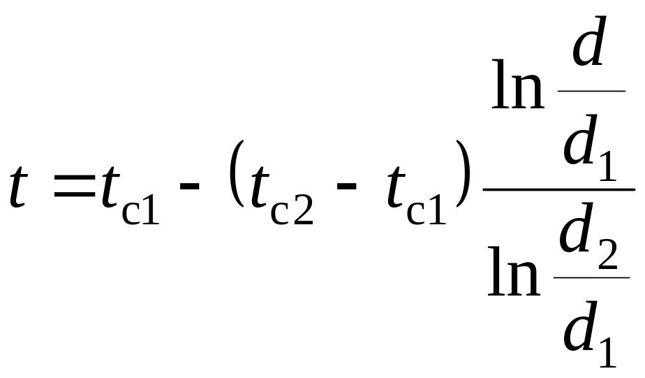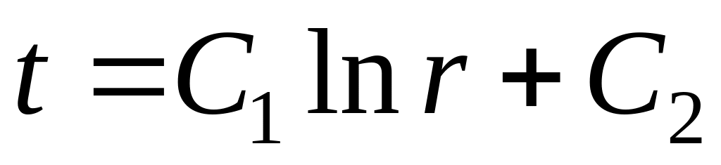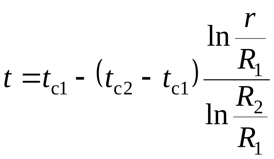 Как следует из (4.8), распределение температуры внутри цилиндрической стенки представляет собой логарифмическую кривую. Найдём плотность теплового потока.