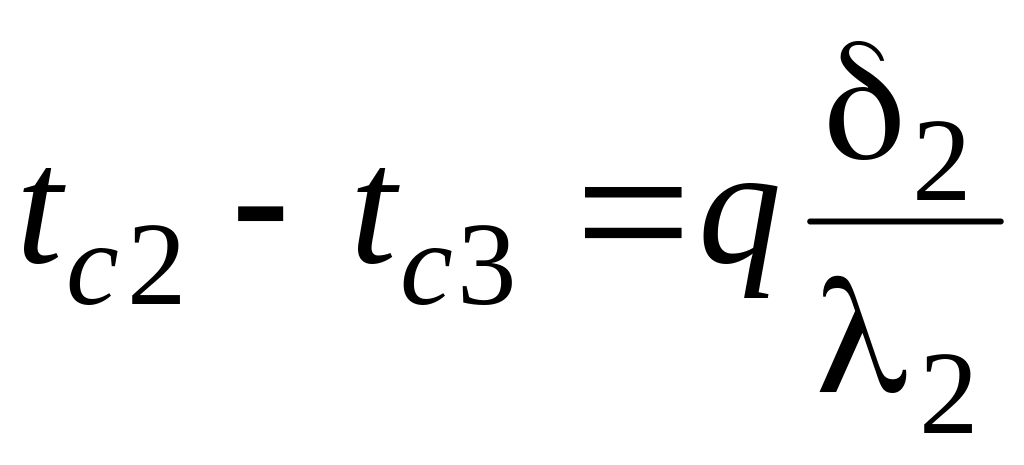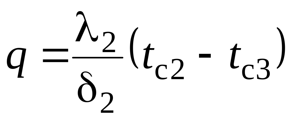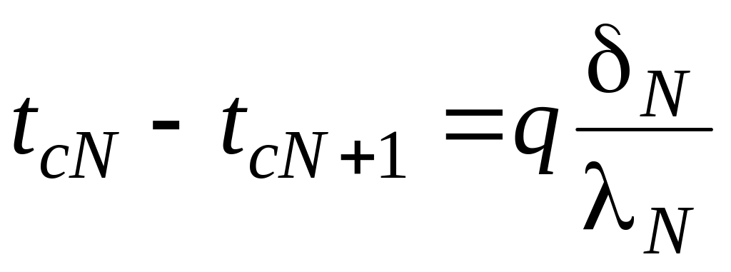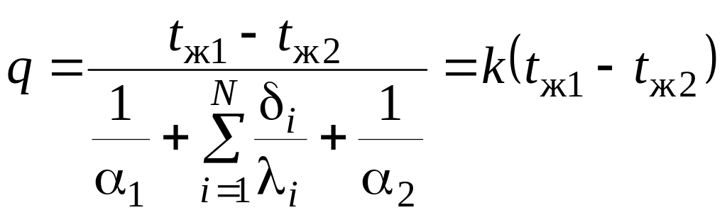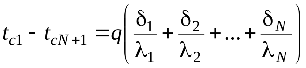 и плотность теплового потока в случае многослойной стенки запишем в виде