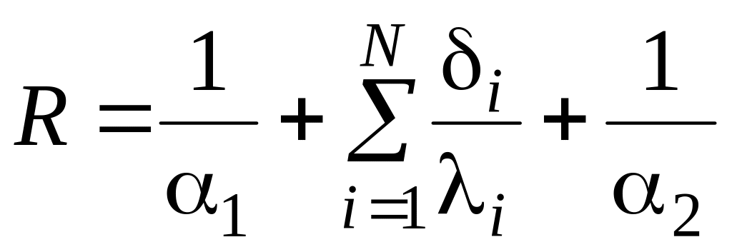Общее термическое сопротивление равно сумме частных сопротивлений, поэтому для многослойной стенки полное термическое сопротивление можно записать в виде