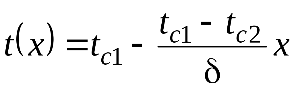 Из формулы (4.2) следует, что распределение температуры в плоской стенке представляет собой прямую линию, а из (4.3) следует, что плотность теплового потока через плоскую стенку не зависит от координаты х.