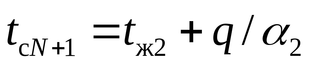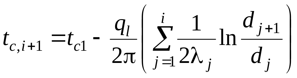 Температура на границе слоёв i и i+1 можно найти следующим образом