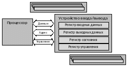 Взаимодействие с периферийным устройством подразумевает передачу информации в устройство, прием информации из устройства, настройка устройства или считывание состояния устройства. Для организации такого взаимодействия каждое устройство оснащено своими регистрами входных данных, выходных данных, состояния устройства и управления устройством.