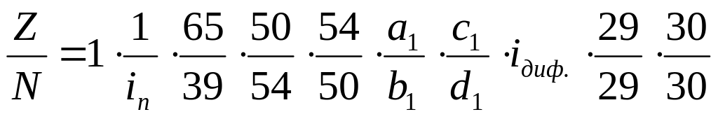 Отсюда можно определить формулу настройки для подбора сменных колес гитары дифференциала:
