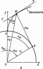 Рис. 16.7. Эвольвентная кривая: а — построение эвольвенты; б — расчетная схема