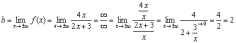 Где a является действительным числом, либо стремится к + или -∞. В Этом случае функция имеет в точке а неопределённость типа ∞∞. Для вычисления предела в этой точке необходимо разделить числитель и знаменатель на x в наивысшей степени.