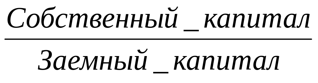 Показывает, какая часть деятельности организации финансируется за счет собственных средств, а какая – за счет заемных. Величина коэффициента ≤ 1 (большая часть имущество организации сформирована за счет заемных средств) свидетельствует об опасности неплатежеспособности |