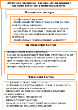 Рис. 8. Внутренние (эндогенные) факторы, обуславливающие кризисное финансовое развитие предприятия