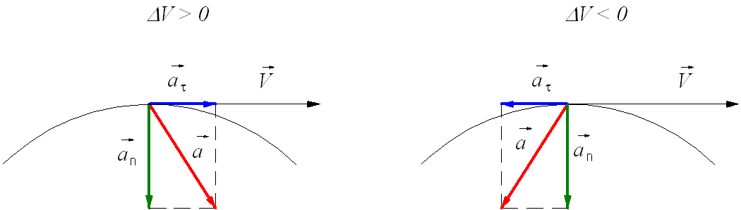 (1)Тангенциальное ускорение - ускорение, направленное параллельно мгновенной скорости и изменяющее ее по величине