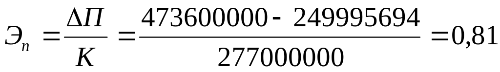 Экономическая эффективность капитальных (Эп) вложений рассчитывается по формуле (12)