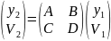где y и V – высота и угол луча в начальном и конечном положении. Матричные элементы таковы, что определитель (AD - ВС) равен единице. При прохождении луча в обратном направлении матричное уравнение обращается и принимает вид: