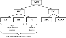 МП – материальное производство; ПС – производительные силы; СТ – средства труда; ПТ – предметы труда; Л – люди; ПО – производственные отношения; ПТО – производственно-технические отношения; СЭО – социально-экономические отношения.