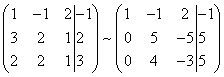 В результате вновь получим матрицу системы, эквивалентной данной системе линейных уравнений: