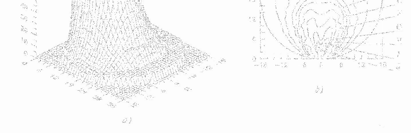 На рис. 10.4, б представлены результаты численного эксперимента для схлопывания пузырька у стенки. Вещественные показатели к схеме на рис. 10.4, б приведены в табл. 10.1. На рис. 10.4, а показана пространственная интерпретация численного эксперимента, проведенного М. Плессетом и Р. Чепменом. Скорость кумулятивных струек, по их расчетам, для