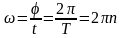 бунда Т — айланиш даври, n — айлаииш частотаси, яъни вақт бирлигидаги айланишлар сони.
