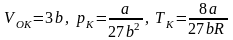 Берилган газга тегишли а ва b доимийлар шу газнинг Тк — критик температураси, рк — критик босими ва V0K — критик ҳажми билан қуйидагича боғланган: