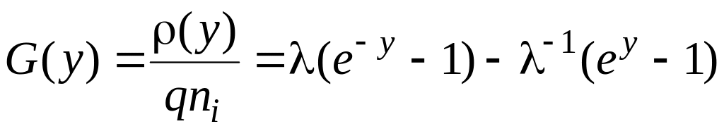 Выразим концентрации в (2.14) через у – безразмерный изгиб зон. Так как существует взаимнооднозначная связь х и у, используя (2.10, 2.11), получим