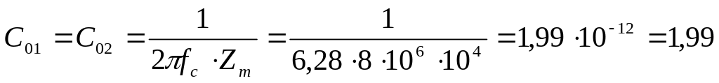 Характеристическое сопротивление фильтра Zm берем равным сопротивлению нагрузки Rн , т.е. Zm = 1 кОм