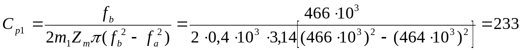 Средняя частота настройки фильтра fc = 465 кГц. Частоты среза fa = 464 кГц; fb = 466 кГц. Полоса пропускания = fb – fa = 466 кГц – 464 кГц = 2 кГц. Относительная полоса