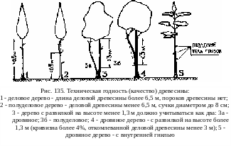 При распределении по категориям технической годности эти требования учитываются. Кривизна ствола определяется глазомерно, наличие внутренней гнили - по косвенным признакам: дуплам, наличию трещин, плодовых тел грибов, некрозу коры, механическим повреждениям (рис. 135).