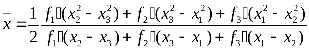 7 этап. Вычислить точку минимума интерполяционного полинома, построенного по трем точкам: