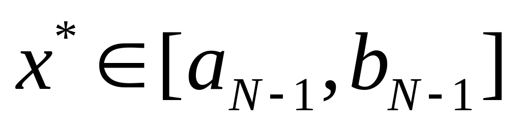 1 этап. Задается начальный интервал неопределенности , - допустимая длина конечного интервала, - константа различимости.
