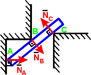 Реакция N невесомого стержня направлена вдоль стержня. Обычно реакция N изображается от тела по стержню, в предположении, что в равновесии стержень растянут.