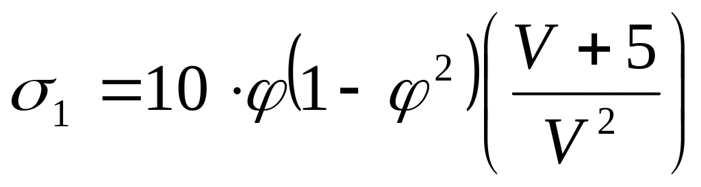 Продольнная состовляющая коэффициента сцепления при скорости движения транспортного средства V рассчитывают по формуле