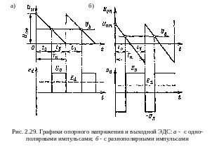 Так как начало положительного импульса соответствует условию Uу=Uоп, то с учетом этого из (2.70) и (2.71) могут быть получены характеристики управления ШИМ для ШИП с однополярными и разнополярными импульсами