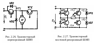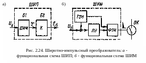 Силовые схемы ШИП выполняются на основе полностью управляемых вентильных приборов транзисторов и запираемых тиристоров или на основе аналогов полностью запираемых приборов - обычных тиристоров с узлами их искусственного выключения, называемыми узлами искусственной коммутации. Выходная ЭДС ШИП, прикладываемая к нагрузке, в зависимости от способа коммутации его вентилей представляет собой однополярные или разнополярные импульсы, регулируя скважность которых, можно плавно изменять среднее напряжение на нагрузке.