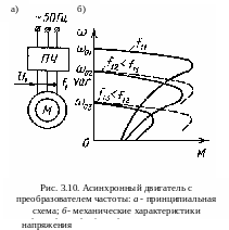 При частотном управлении параметром, характеризующим управляющее воздействие, является частота питающего напряжения f1, т. е. синхронная скорость о = 2f1 / p, где р - число пар полюсов обмотки статора двигателя.
