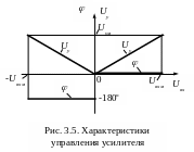 Регулирование скорости вращения исполнительных асинхронных двигателей осуществляют путем изменения напряжения Uу при постоянстве его фазы (амплитудное управление) или изменения фазы постоянного по величине напряжения Uу (фазовое управление). Часто применяют амплитудно-фазовое управление двигателем при одновременном изменении величины и фазы напряжения управления относительно напряжения возбуждения. Направление вращения ротора исполнительного двигателя зависит от того, какое из напряжений (Uв или Uу) является опережающим по фазе.