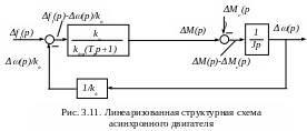 где Tм = Jkдм - электромеханическая постоянная времени двигателя; kд = Δo/Δf1 = 2/p - коэффициент передачи двигателя (p - число пар полюсов двигателя).