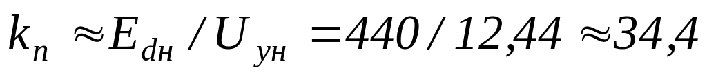 Приближенное значение коэффициента передачи выпрямителя можно определить следующим образом. Номинальное значение выпрямленной ЭДС Edн = 440 В. Этой ЭДС соответствует по условию задачи угол управления 1 = /18 и как следует из (6.2), напряжение управления Uун = 12,44 В.