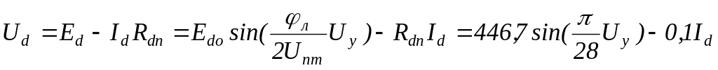 Уравнение характеристики управления реверсивного выпрямителя при токе нагрузке Id = 0, с учетом выражения (2.58) и подстановок в него соответствующих расчетных величин, имеет вид