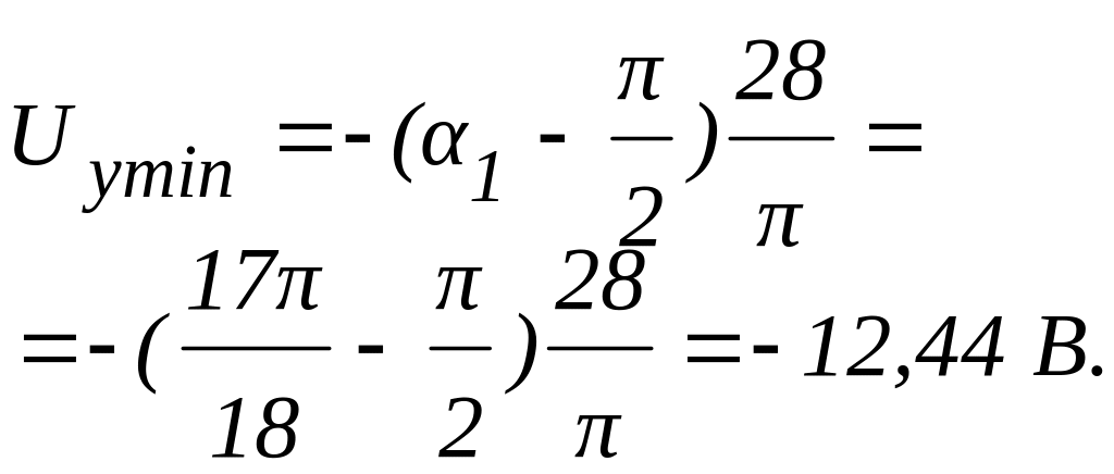Для выполнения указанного в условии ограничения максимального угла отпирания 1 значением 17/18 минимальное значение напряжения управления с учетом (6.2) равно