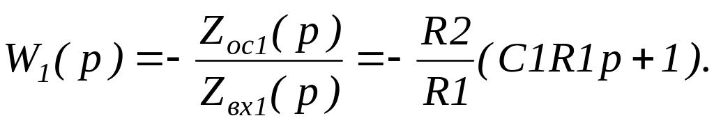 Полагая, что без учета инверсии входного сигнала усилителя передаточная функция W1(p) равна составляющей WПД(p) из выражения (6.7), имеем: