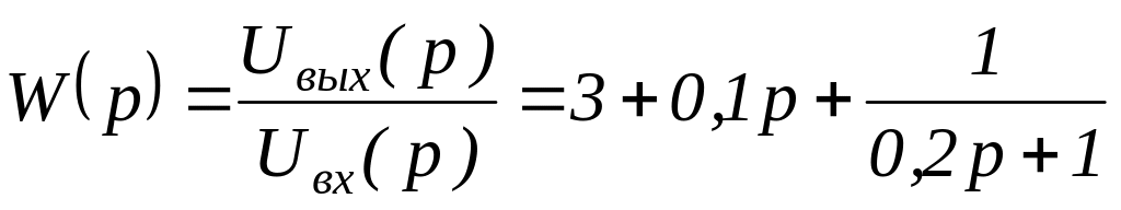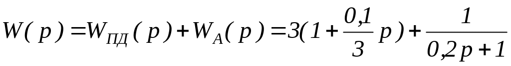 Очевидно, что данная передаточная функция состоит из суммы передаточных функций пропорционально-дифференциальной части и апериодической части и может быть записана в виде