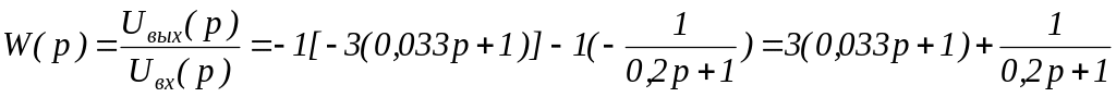 где WПД(p) = kП(1+T1p) - передаточная функция пропорционально-дифференциальной части, в которой kП = 3, T1 = 0,1/3 = 0,033 с; WА(p) = 1/(T2p + 1) - передаточная функция апериодической части, в которой T2 = 0,2 с.